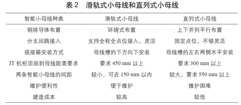 (2)智能小母線分為滑軌式小母線和直列式小母線,考慮到機(jī)房的實際應(yīng)用環(huán)境,推薦采用滑軌式小母線,不建議采用直列式小母線。