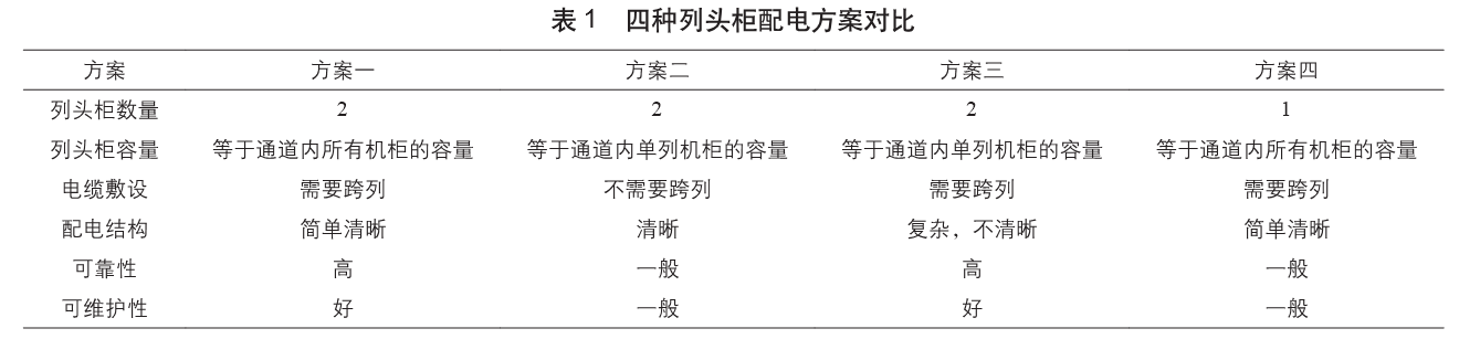 綜合列頭柜的上述4種列頭柜配電方案的優(yōu)、缺點,建議采用配電方案一。
