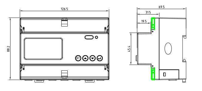 導軌式多功能儀表采用DIN35mm導軌式安裝結構、LCD顯示,測量電能及其它電參量,可進行時鐘、費率時段等參數設置,并具有電能脈沖輸出功能;可用RS485通訊接口與上位機實現數據交換。
